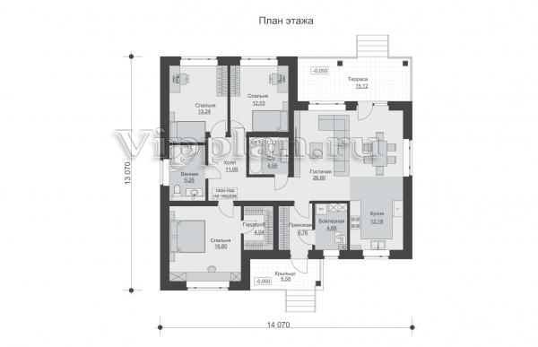 | Размеры дома: | 13.07м×14.07м |